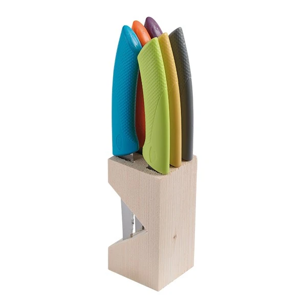 Ils sont livrés avec un bloc en bois de rangement, pour les disposer de manière pratique sur votre plan de travail ou sur vos étagères.