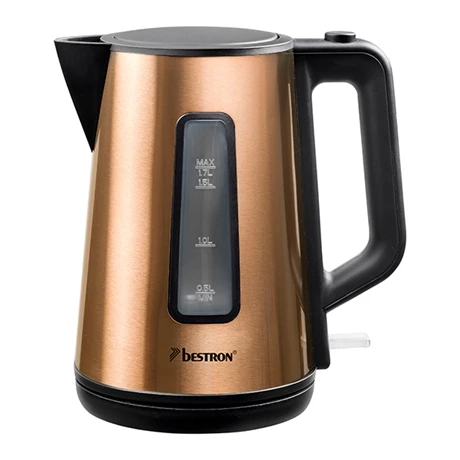 La marque néerlandaise Bestron propose plus que des produits, elle offre cinquante ans d’expérience, un excellent rapport qualité/prix et un style de vie tendance. Avec la conception de la Copper Collection, un design métallique sobre et élégant fait son entrée dans la cuisine. Un objet design pour un usage quotidien ! La bouilloire électrique cuivre 1,7 L 1850/2200 W se distingue par son revêtement cuivre étincelant du plus bel effet.