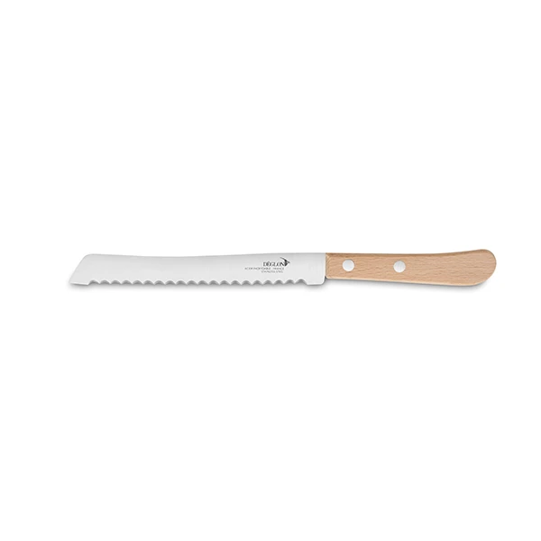 Issu d’une gamme de couteaux développée par la coutellerie Déglon, basée à Thiers, ce couteau possède une lame rigide d’une belle longueur de 19 cm en acier inoxydable. Son manche ergonomique fabriqué en bois de hêtre issu de forêts françaises, travaillé en circuits courts, assure une excellente prise en main.