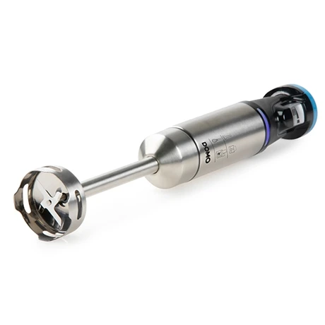 - – L’embout mixeur à soupe en inox est composé de 4 couteaux Quad Blade pour un mixage fin et lisse et son pied est plat pour mixer les plus gros morceaux et éviter les éclaboussures. Soupes, pesto, smoothies sont faciles à mixer avec ce pied plongeant peu encombrant.