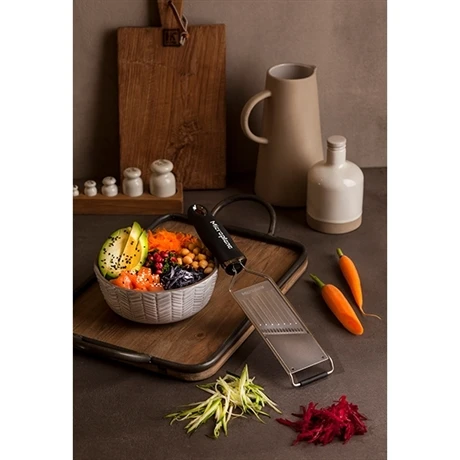Faites vos juliennes de légumes avec un ustensile manuel simple et rapide à utiliser : la mandoline à julienne Gourmet Microplane fait partie de la nouvelle gamme d’outils spécialisés de Microplane, qui profitent de ses lames en acier inoxydable ultra-affûtées réputées dans le monde entier. Coupant toutes les textures sans efforts, vous pourrez faire vos juliennes en quelques gestes, sans nécessiter un appareil à régler ou électrique qui demanderait plus de temps de mise en place. Choux, courgettes, betteraves ou pommes de terre, vous pourrez autant réaliser des décorations pour vos plats que des juliennes, des petites frites ou des coleslaws.